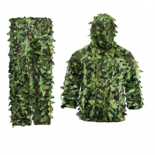- Материал: Маскировочный костюм выполнен из прочного и дышащего полиэфирного волокна. Этот материал обеспечивает долговечность костюма и комфорт в любых погодных условиях.
